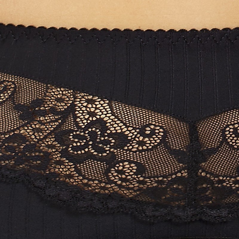 Fabriqué en délicate microfibre côtelée et agrémenté de dentelle italienne de haute qualité, cet ensemble offre un look raffiné et séduisant. Les bretelles élastiques, semblables à celles d'un soutien-gorge, sont réglables, ce qui permet un ajustement personnalisé et un plus grand confort.