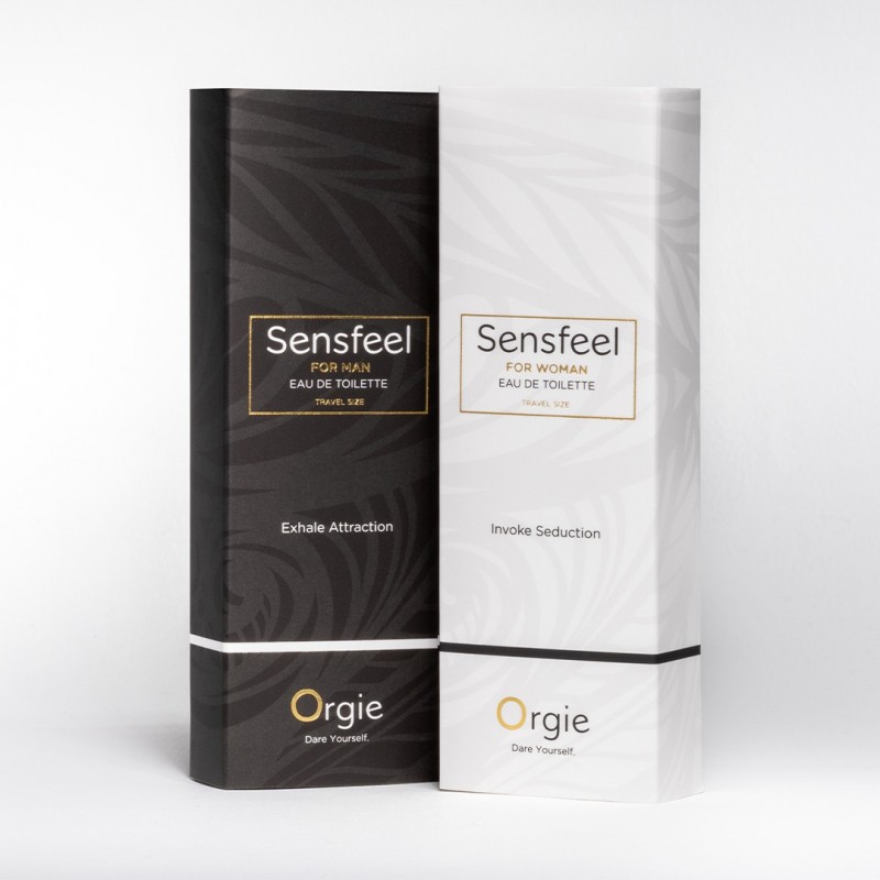Parfum EDT Sensfeel for Woman en format voyage 10 ml, formule exclusive Orgie contenant l'ingrédient actif naturel Sensfeel for Her™, un booster de phéromones qui peut augmenter la production de testostérone chez les hommes grâce à l'interaction de deux de ses composants - le jasmin blanc (Jasminum officinale) et les acides gras à chaîne courte (AGCC) dérivés de la caroube (Ceratonia siliqua) - ce qui permet d'imiter la copuline, la phéromone sexuelle féminine.