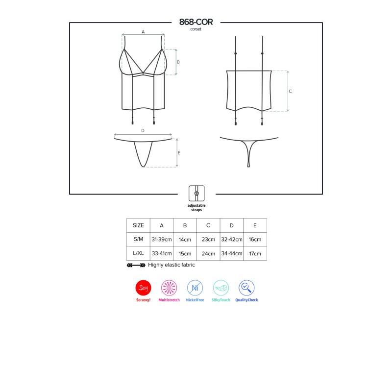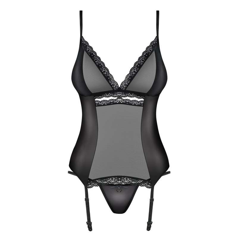 Explore a sua noite e seduza com este corpete sensual. Aproveite para conquistar com o mais requintado sentido de atração. Feito em micro rede, cetim debruado e com um romântico pendente. Vista sensualidade e originalidade, deixando-o louco de desejo. Vista sensualidade e originalidade, deixando-o louco de desejo. Este produto é da marca OBSESSIVE, uma marca líder, repleta de erotismo e sensualidade com modelos únicos que enaltecem ainda mais o corpo das mulheres.