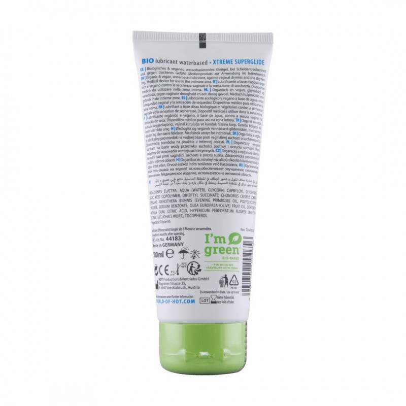O HOT™ BIO Superglide Extreme é um lubrificante deslizante à base de água que permanece suave por muito tempo. É seguro usar em combinação com preservativos e brinquedos sexuais. O HOT™ BIO Superglide Extreme é um lubrificante completamente natural num tubo ecológico.