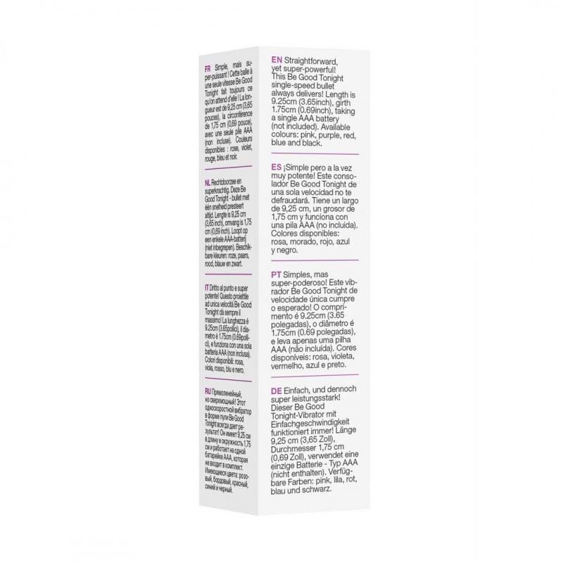 Compacta, mas irresistível! A bala vibratória Be Good Tonight proporciona vibrações intensas para um prazer imediato.