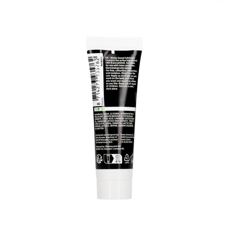 Lubrificante à base de água. Contém o ingrediente ativo CBD (Cannabidiol). Adequado para utilização com preservativos de látex. Dermatologicamente testado, sem gordura, incolor, inodoro e insípido.