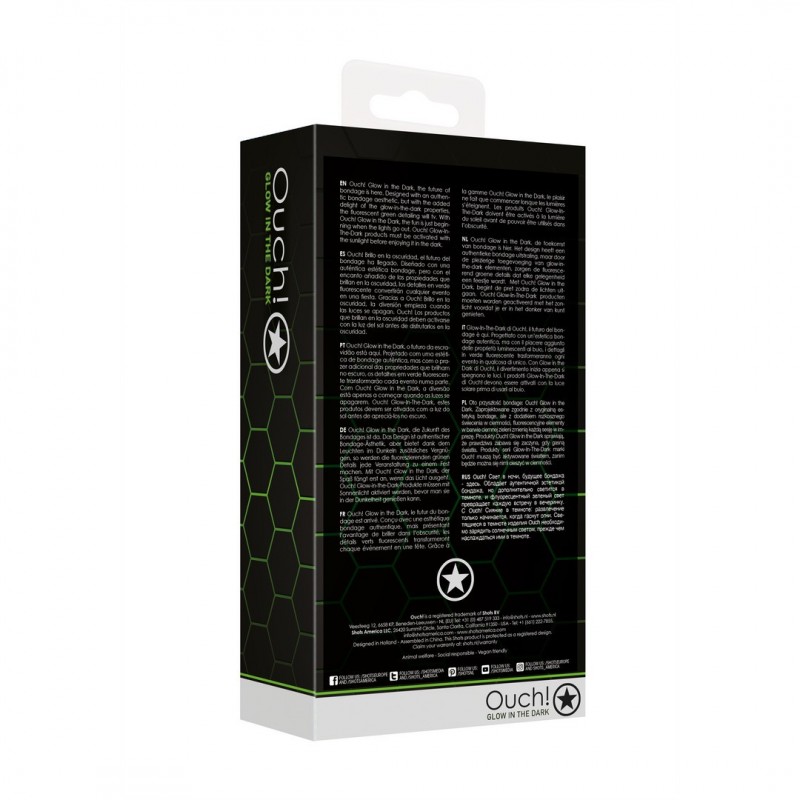 Concebida com uma estética bondage autêntica, mas com o prazer adicional das propriedades que brilham no escuro. Com Ouch! Glow in the Dark, o divertido começa quando as luzes se apagam.