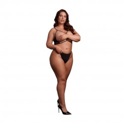 Espartilho único da PASSION feito de lhama preta elástica e tule delicado. Tanga incluída.