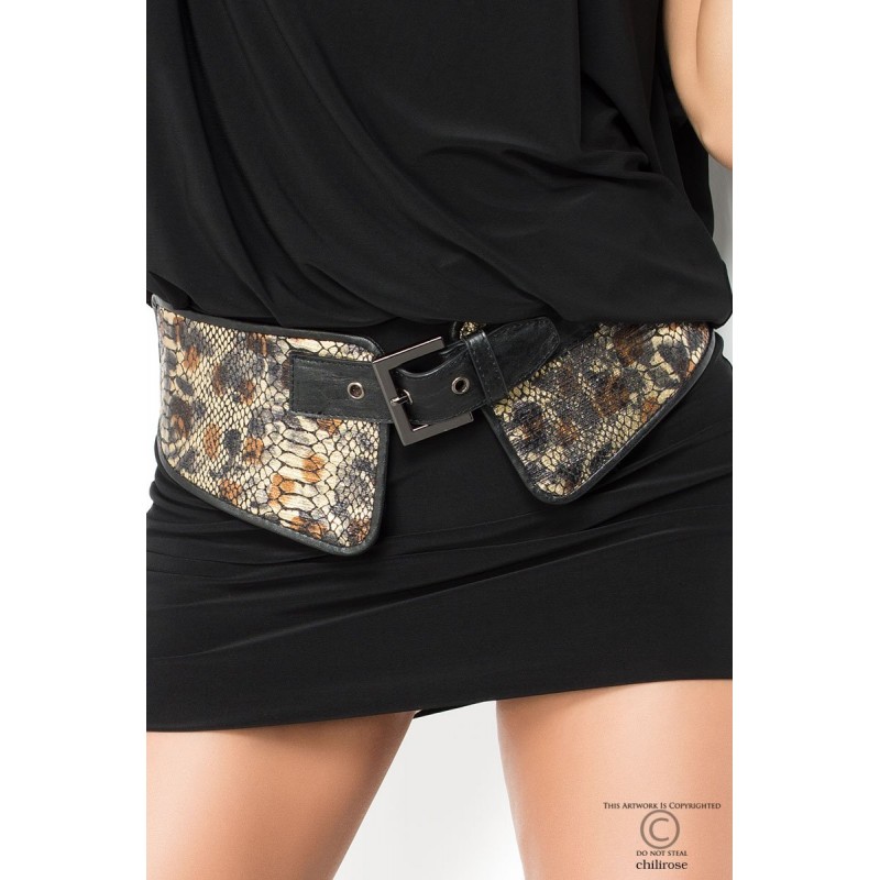 Um belo cinto ajustável com padrão de cobra pitão. A parte traseira é elástica para melhor se adaptar às suas curvas. Uma ideia original e exótica para embelezar um vestido ou dar destaque ao corpo com classe e elegância.